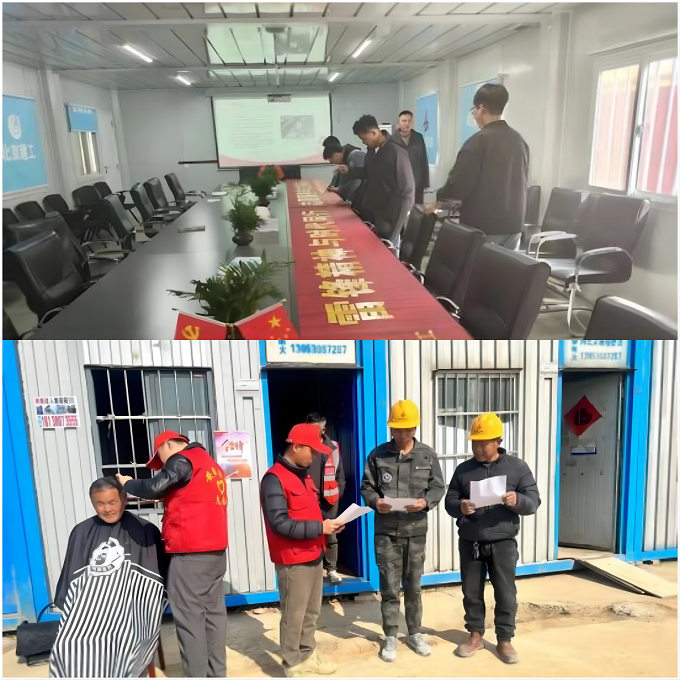 安徽交航第二工程公司團(tuán)支部開(kāi)展以“學(xué)習(xí)雷鋒精神、凝聚精神力量”為主題的觀影活動(dòng),并發(fā)動(dòng)青年志愿者為項(xiàng)目工人發(fā)放文明宣傳手冊(cè),講解宣傳合肥市民公約(守則),為工人提供義務(wù)理發(fā)。
