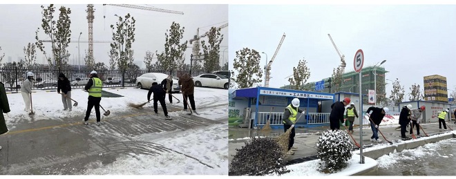 潭沖河家園項目部聯(lián)合監(jiān)理部開展安全隱患檢查,共同清掃項目駐地及現(xiàn)場道路積雪。
