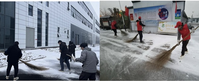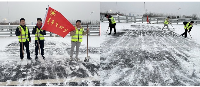第四工程公司組織青年團員清掃項目部、道路兩旁積雪。
