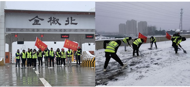 全椒建投成立“青年臨時突擊隊”清掃全椒北互通立交項目上跨合寧高速橋面積雪。