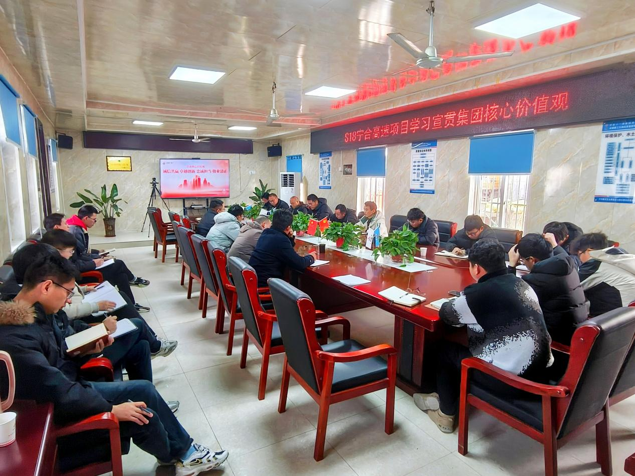 S18寧合高速項目召開專題會議,集中學習了集團下發(fā)的《關于開展安徽建工集團核心價值觀學習宣貫的通知》,鮮明解讀了“誠信共贏 卓越創(chuàng)新 忠誠擔當 敬業(yè)清正”核心價值觀的深刻含義。