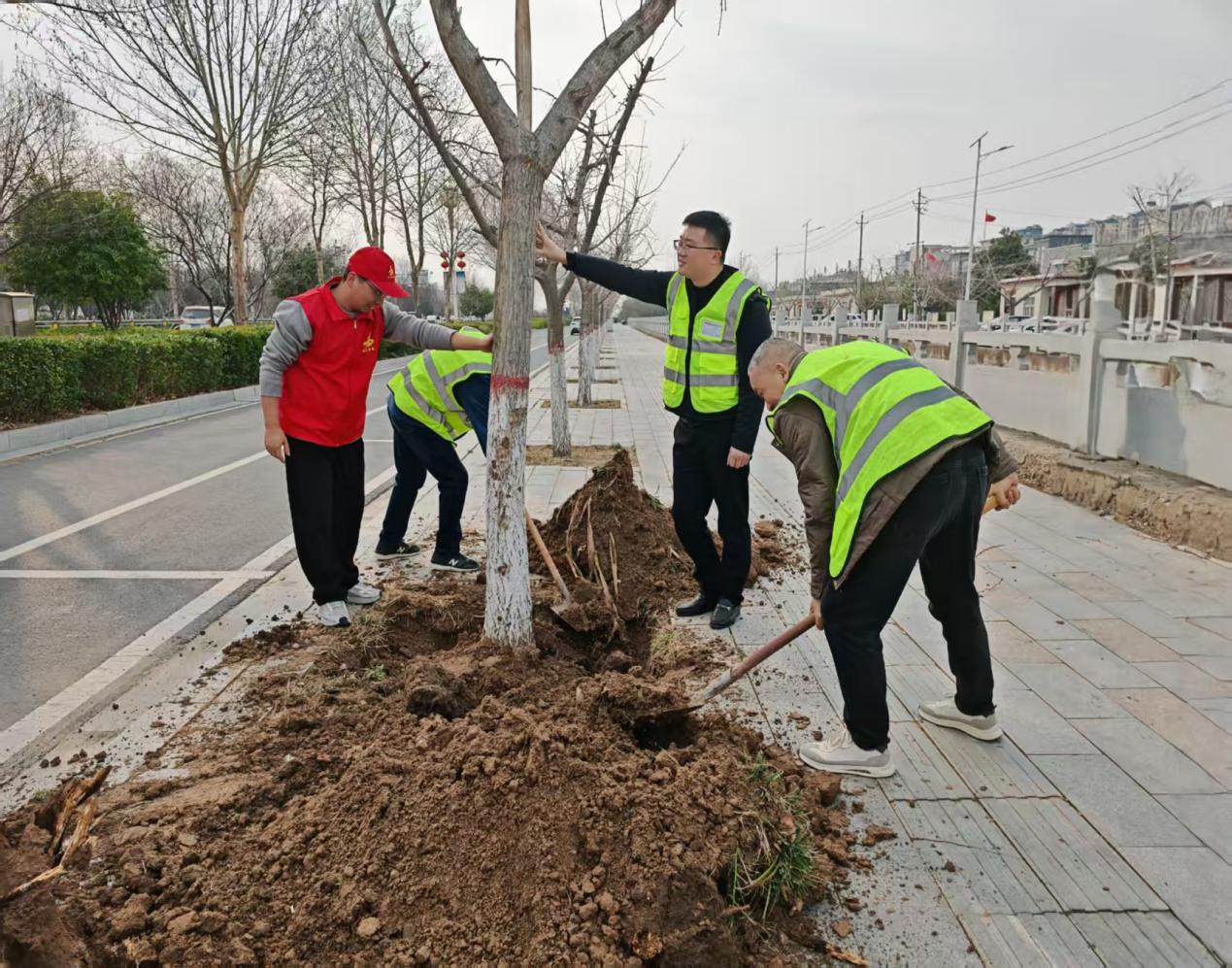 活動現(xiàn)場,黨員干部們熱情高漲、干勁十足。大家分工協(xié)作,揮鍬培土、扶苗圍堰、提水澆灌,每一道工序都一絲不茍。經(jīng)過數(shù)小時的辛勤勞動,共栽培、修復樹木20余株,為初春的大地增添了一抹盎然綠意。