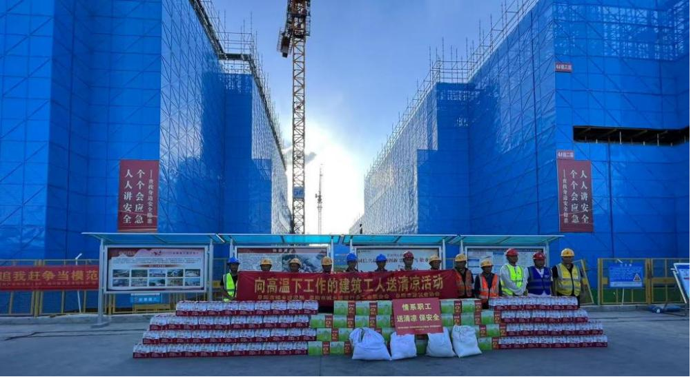 常利華聽取了項(xiàng)目經(jīng)理關(guān)于安全生產(chǎn)管理、防暑降溫措施落實(shí)等情況的匯報(bào),親切詢問工人作業(yè)時(shí)間調(diào)整、避暑設(shè)施配備等安排情況。他親手將礦泉水、綠茶等防暑物資送到工人手中,反復(fù)叮囑高溫作業(yè)要將安全健康放在首位,嚴(yán)格錯(cuò)峰施工,同時(shí)要求項(xiàng)目部細(xì)化防暑舉措,合理調(diào)配人力物力,保障工人健康與安全。