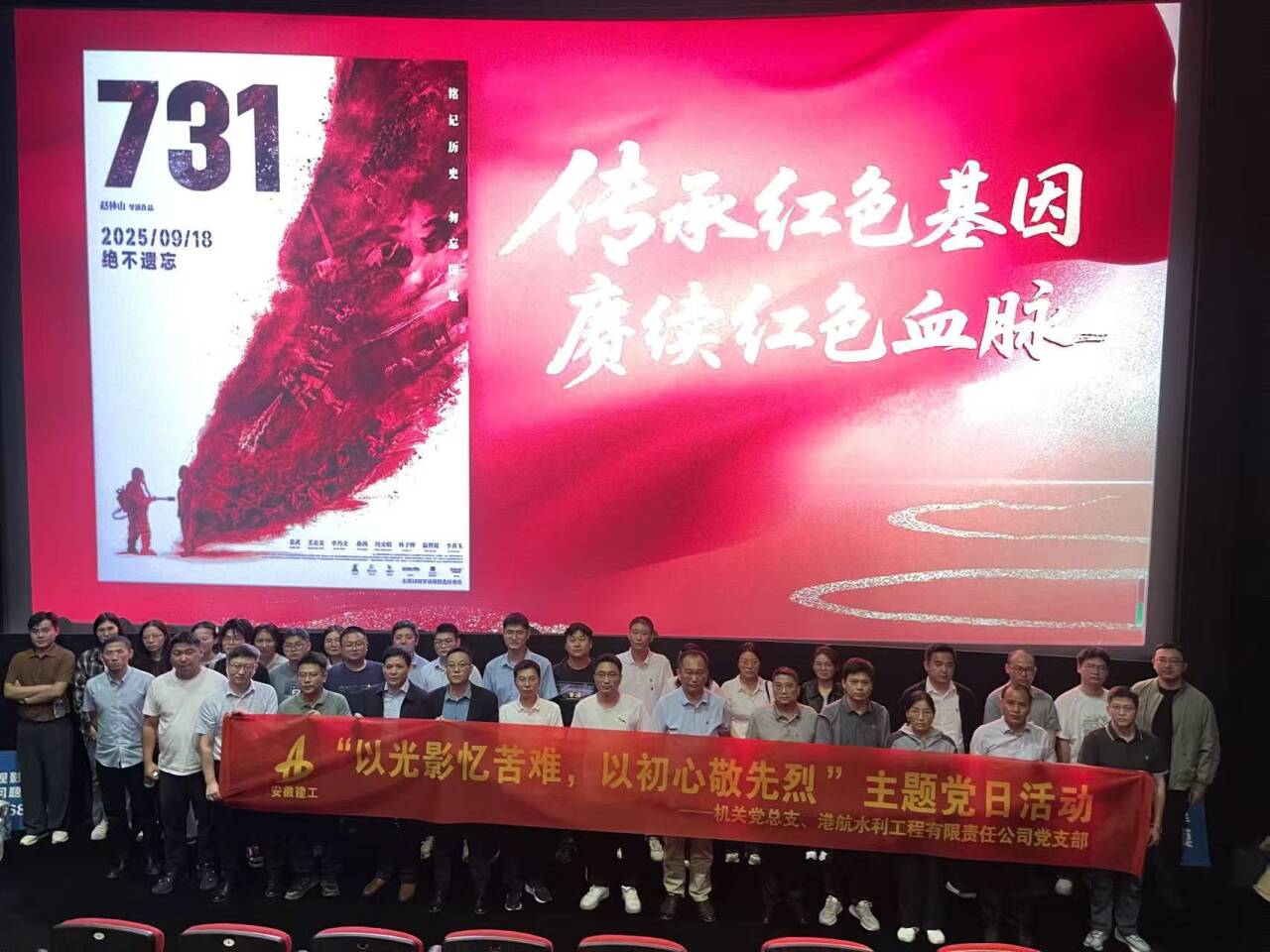 為紀(jì)念 “九一八” 事變爆發(fā) 94 周年,銘記歷史,緬懷先烈,9月18日,公司機(jī)關(guān)黨總支、港航水利公司黨總支聯(lián)合開(kāi)展主題黨日活動(dòng),40 余名黨員干部及職工集體觀(guān)看了電影《731》,以光影為鏡回望歷史,在銘記中筑牢信仰根基,讓 “九一八” 警鐘長(zhǎng)鳴。