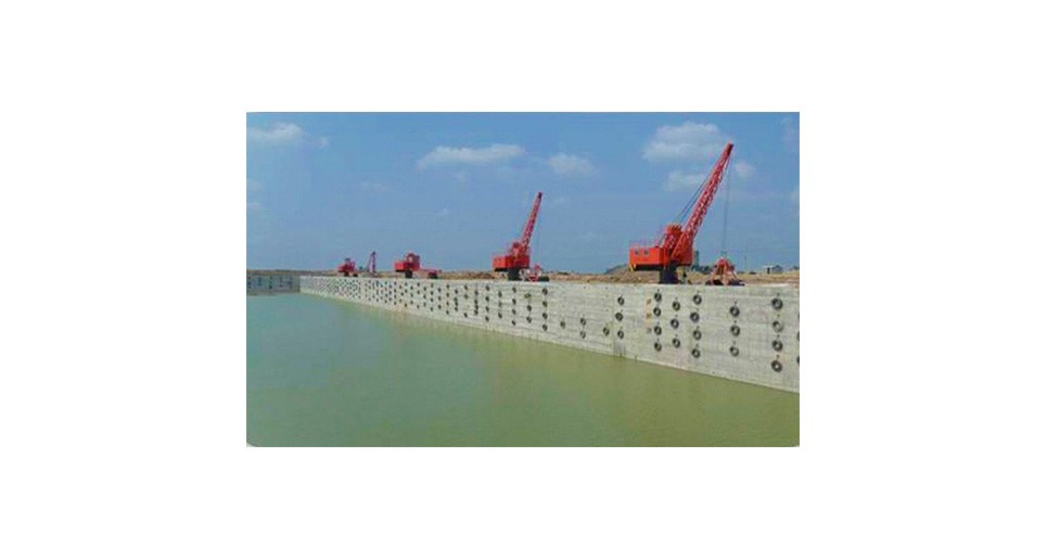 該工程設(shè) 17 個(gè) 500t 級重力式碼頭泊位,其 中散貨碼頭 10 個(gè)、件雜貨碼頭 7 個(gè),年吞吐量 為 8000000t,為千里淮河第一港。